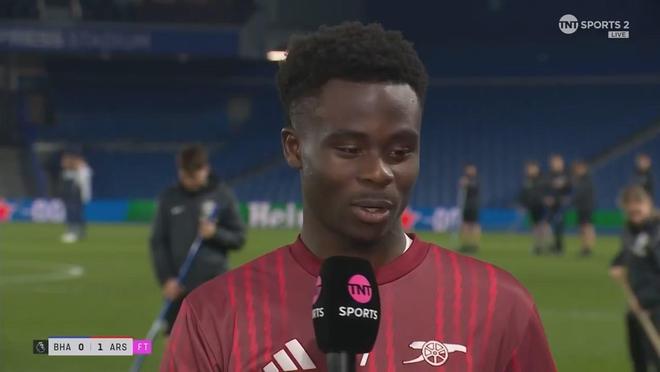 在英超第29輪打進一球幫助阿森納客場1-0擊敗布萊頓之后,薩卡接受了來自TNT體育的采訪。